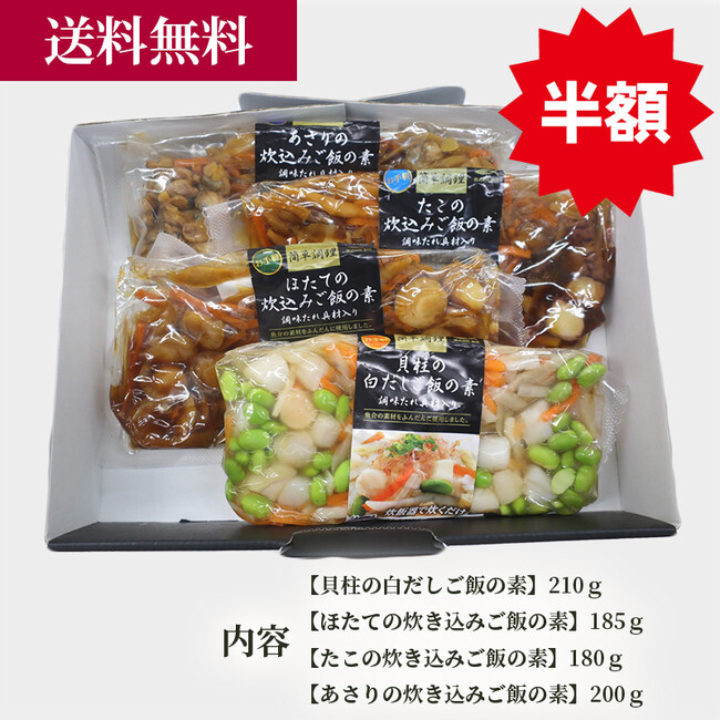 当社PB商品の炊き込みご飯の素シリーズから人気の4種を詰め合わせました。冷凍品ですので食べたい時にお召し上がりいただける海鮮炊き込みご飯の素です。