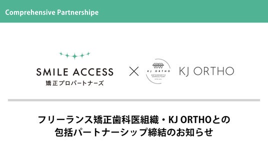 一般歯科医院向け矯正歯科オンライン支援サービス「SMILE ACCESS矯正プロパートナーズ」(以下、SMILE ACCESS)を運営する株式会社Brace(本社:東京都渋谷区、代表取締役:吉住淳)は、矯正歯科医組織・株式会社KJ ORTHO(本社:東京都目黒区、代表取締役:菊田純)と、矯正医療連携に関する包括パートナーシップ契約を締結いたしました。