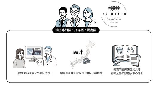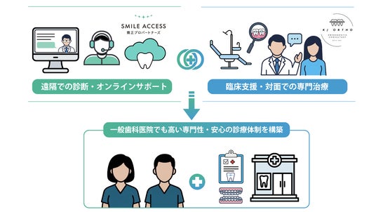 こうした背景を踏まえ、全国で矯正歯科医による臨床支援を展開するKJ ORTHOと連携し、オンラインと対面診療を組み合わせた診療体制の強化を図ります。
