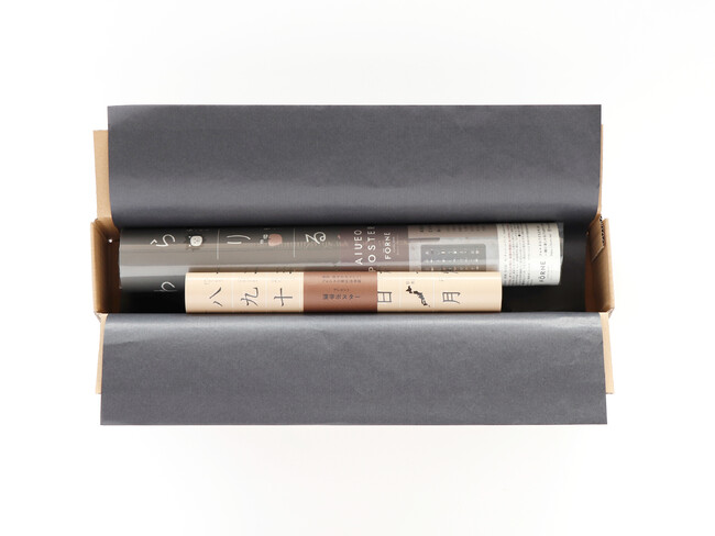 ノベルティの漢字表は上記のように巻いた状態でご注文商品とあわせて配送いたします(漢字表のみの個別配送は承っておりません)。