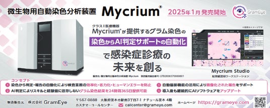 GramEyeは、感染症診断領域において、微生物検査の初手である「グラム染色」の自動化を実現するMycrium(R)を2025年1月に上市しました。