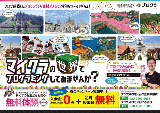 株式会社ラネット(本社:東京都豊島区、以下ラネット)が運営する小学生向けプログラミング教室「プロクラ」が、ドコモショップ赤羽校、ドコモショップ三軒茶屋校にて授業料が初月無料となる『春の習い事応援キャンペーン』を実施いたします。この春、新たにお子様の習い事を検討している方、お子様の習い事としてプログラミング教室を検討されている方にぴったりのお得なキャンペーンです。