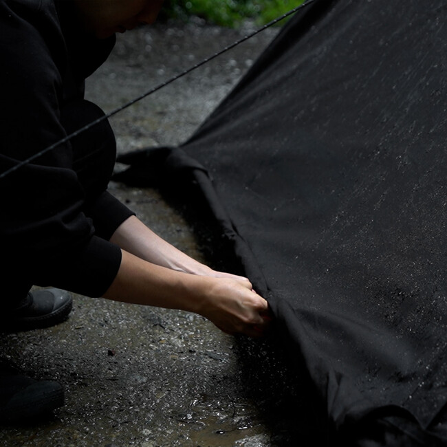 風合いも良く、高い遮光性と通気性を兼ね備えていて、焚き火も存分に楽しむことができます。