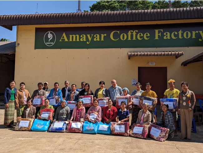 ミャンマーの少数民族ダヌー族の出身で、3代続くコーヒー農家に生まれたSu Su Aungさんが「自分たちの土地で栽培し、地元の労働力で生産したコーヒーがもたらす利益を地元に還元したい」という想いから、2016年、地元の農家の女性50人で立ち上げたコーヒー生産者グループ「Amayar Women's Coffee Group」。ビーンズ・コネクティッド株式会社が展開するコーヒー焙煎ビジネスプラットフォーム「RoCoBeL」では彼女たちが生産するコーヒー豆をフェアトレードで毎年3トン仕入れて、国内で焙煎しています。2023年2月に「ミャンマーコーヒーの里帰り」を実現すべく、その焙煎豆とドリップバッグに加工した商品を持って、ミャンマーのユワンガンの町にある「Amayar Women's Coffee Group」を訪問しました。この模様は3月に配信しました。今回はその続編です。前回の配信は下記をご覧ください。