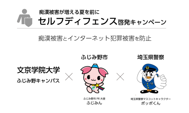 ふじみ野市、東入間警察署、文京学院大学が連携し、痴漢などの被害から自分を守り、安全で安心なまちづくりを実現するために、キャンペーンを行います。