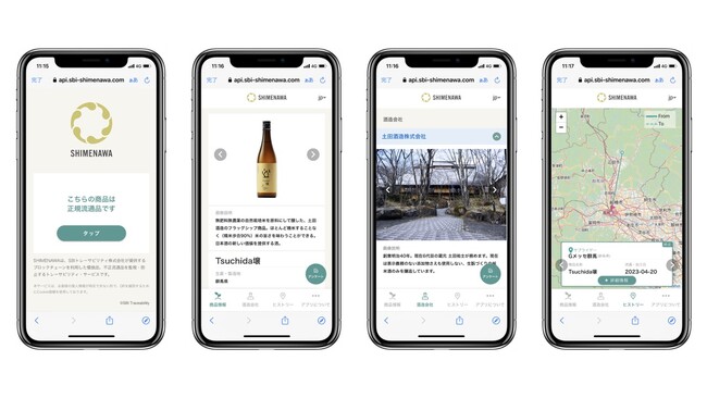 SHIMENAWA(しめなわ)はブロックチェーン技術とNFC/RFID技術を融合させたデジタルペアリングで、酒米の生産者・産地や醸造元情報のほか、出荷日などの流通プロセスを可視化すると共に、その日本酒が本物である「真贋証明」や、いつどこで消費されたかの「開封検知」機能が搭載されています。