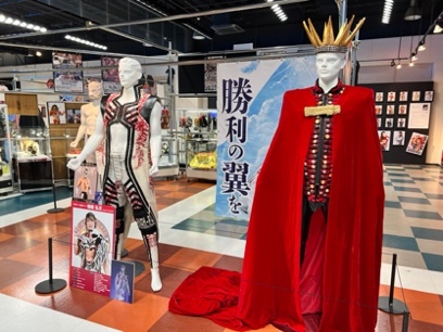 フラッシュ撮影をすると光る仕様となっているオカダ選手のこだわりの衣装を広島会場限定で展示!
