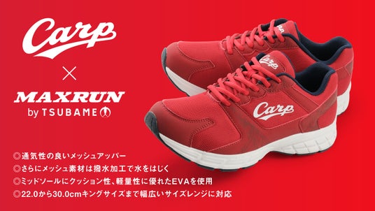 真っ赤なシューズでカープを応援!広島東洋カープと広島化成のツバメブランド「マックスラン」によるコラボレーションシューズ「マックスランC002」が新発売!