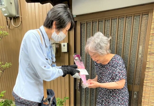 兵庫ヤクルト販売株式会社は、敬老の日に合わせて、兵庫ヤクルト販売エリアにお住まいの75歳以上の一人暮らしのお客さま7500名に、9月7日~16日の期間、長寿の願いを込めて、お花とメッセージカードを贈りました。