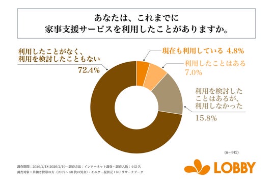 家事代行サービスを展開する株式会社ロビー(本社:東京都新宿区、代表取締役:対馬 誉仁)は、共働き世帯の方(20代~50代の男女)を対象に「家事支援サービスを利用することへの心理的障壁に関する調査」を実施しました。この調査から、共働き世帯の方が抱える家事への負担感や、家事を他人に任せることへの罪悪感、家事支援サービスの利用実態などが明らかになりました。