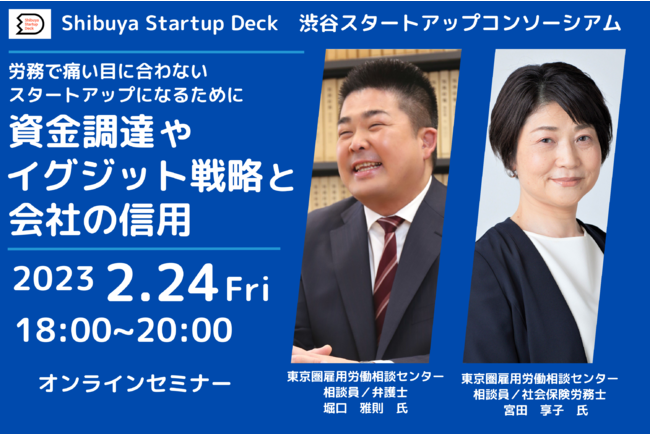 渋谷区と民間企業の産官連携でスタートアップをサポートするコンソーシアム“Shibuya Startup Deck”(拠点:東京都渋谷区/Chairman:鈴木 寛 - 東京大学教授、慶應義塾大学教授/以下、SSD)は、活動部会のひとつである人材・HR部会から、スタートアップ・ベンチャー企業の成長に不可欠な労務管理強化のためのセミナーを開催します。