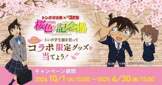 株式会社トンボ(本社:岡山県岡山市北区厚生町2-2-9、代表取締役社長 藤原竜也)は子どもから大人まで人気の「名探偵コナン」とコラボし、春の入学・進級準備を応援するキャンペーン『桜色の記念品(さくらいろのメメント)』を2024年10月より開催中です。賞品の一部は実際に学校制服で採用されている縫製方法や資材製品を使い、トンボ学生服をもっと身近に感じていただけるキャンペーンになっています。