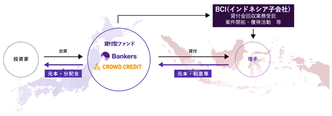 BCIの設立は、インドネシアで事業を展開する企業への貸付金の回収業務を営業者(注)より 受託することと、さまざまな貸付案件の開拓・獲得活動を目的としています。投資家のみなさまの保護を最優先に考え、安定的に商品を提供する上では、日本国内と同水準の案件管理をインドシアでも実現することが重要であり、そのためには債権回収、貸付先へのきめ細かいモニタリング、有事の際に担保権を速やかに実行すること等、抜かりのない貸付金回収態勢を整える必要があり、また現地で活動することで、より多くの貸付案件の開拓・獲得が可能となるため、BCIをインドネシア国内に設立することとしました。