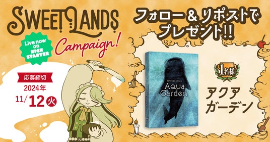 本日22:00より、『Sweet Lands』のKickstarterキャンペーン開始を記念して、人気作『Aqua Garden』のセットが1名様に当たるXリポストキャンペーンを公式X(@uchibacoya)にて開催いたします。