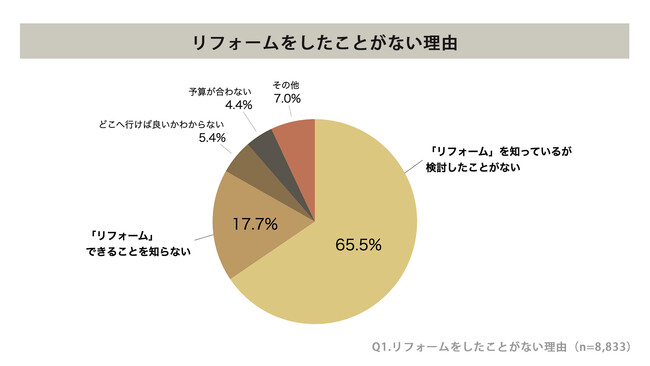 ジュエリーを持っている8,833人のうち、約8割の方が「リフォームを検討したことがない」「リフォーム自体を知らない」と回答。リフォーム方法や金額など複雑で分かりにくいサービスのため、躊躇される方が多くいらっしゃいました。