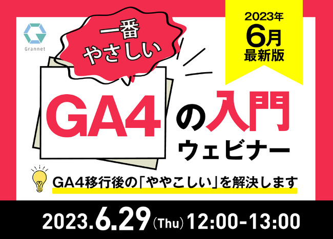 SEOコンサルティング等のデジタルマーケティングを提供している株式会社グランネット(本社:大阪府大阪市 代表取締役:山本 真俊)は、06月29日(木)にGA4に関する無料ウェビナーを開催いたします。