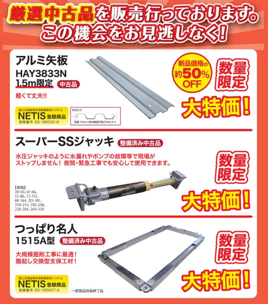 o腹起し交換型土留支保工材の整備済み中古品を大特価で販売。