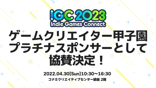 株式会社STAND(本社:東京都豊島区、代表:宮田 大介、以下「STAND」)内、学生インディーゲームの成長型コンテスト「ゲームクリエイター甲子園」を運営するゲームクリエイターズギルドは、株式会社コナミデジタルエンタテインメント(本社:東京都中央区、代表:早川 英樹、以下「コナミデジタルエンタテインメント」)が開催する、インディーゲーム展示会「Indie Games Connect 2023」にプラチナスポンサーとして協賛します。