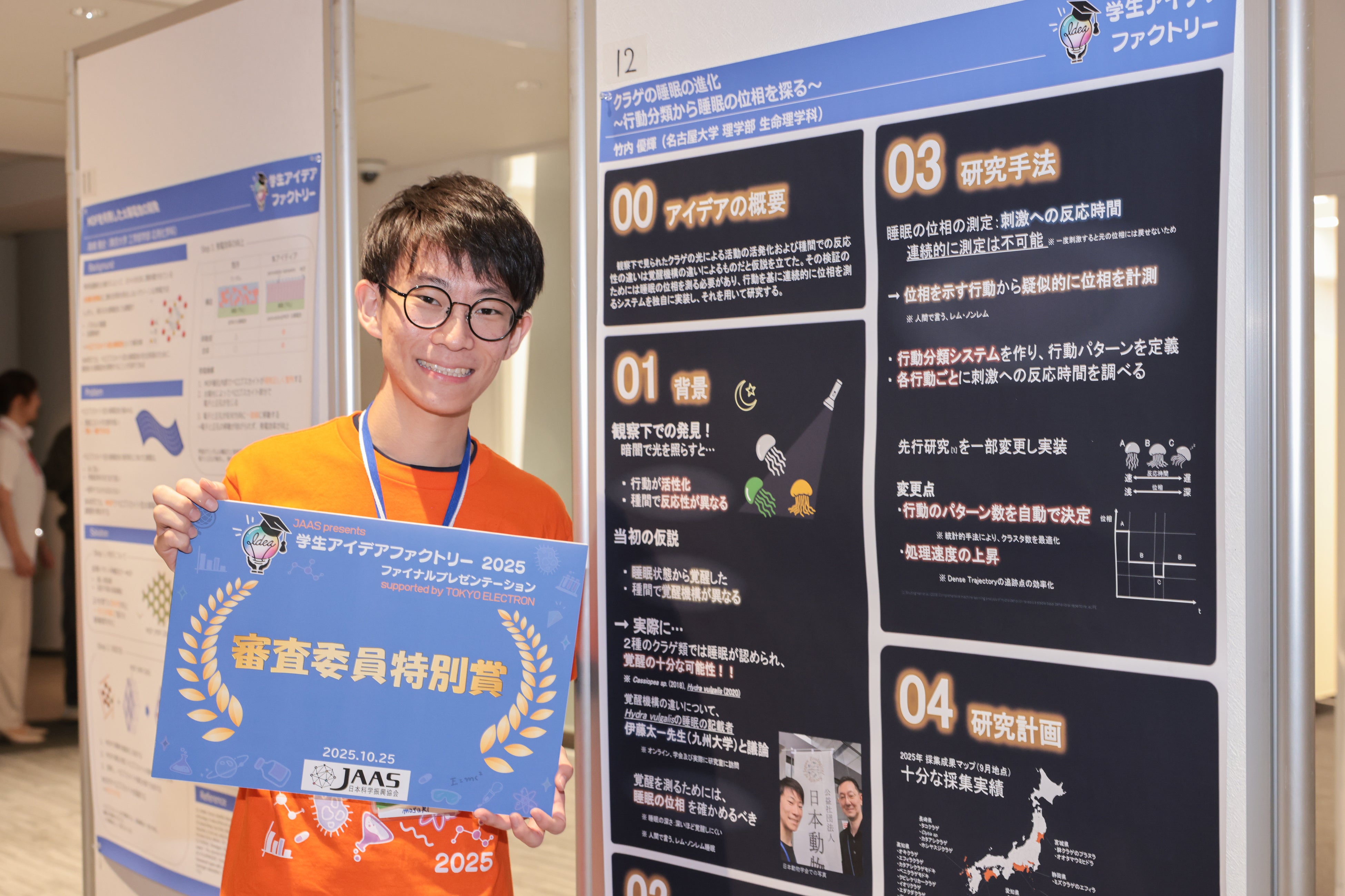受賞アイデアは、学生アイデアファクトリー2025のホームページで公開しております。JAASは、本プロジェクトを通じて「日本の科学を、もっと元気に。」の担い手となる、創造力高い学生たちに知的体験の場を提供していきます。