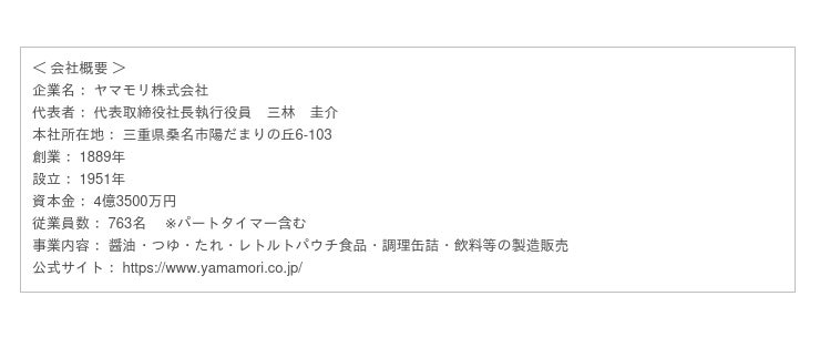ヤマモリは、醤油醸造業を祖業とする食品メーカーとしての技術を活かして醤油の付加価値化を長年研究してきました。燻製醤油(R)のほかにも、おいしさを犠牲にしない減塩醤油の開発、醤油の発酵過程でGABA(ガンマーアミノ酪酸)を産生する技術では特許を取得するなど、長年培ってきた技術と知見を家庭用・業務用の両方で活用した商品、お客様の健康に配慮した商品の展開を続けています。