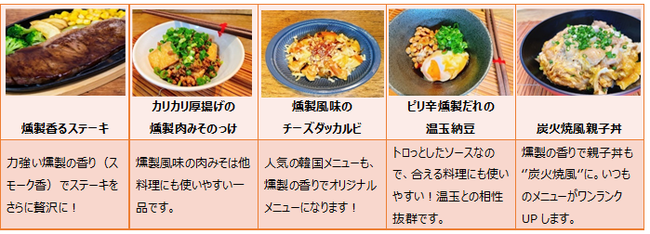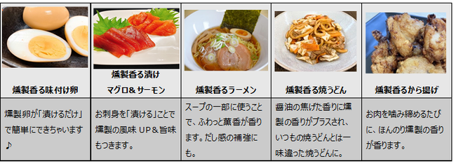 春に向けて外出が活発になる兆しが見え始め、外食産業の盛り上がりにも期待がかかる中、外食・中食においてお客様が求めるのは「自分では作れない味」のメニュー。そうしたニーズを背景に、燻製調理は、独特なスモーク香、そして香ばしい味わいで人気があります。メニューも多用で、肉や魚などのメインディッシュはもちろん、チーズや卵などのおつまみ、ラーメンなどの主食に至るまで幅広いニーズがあります。