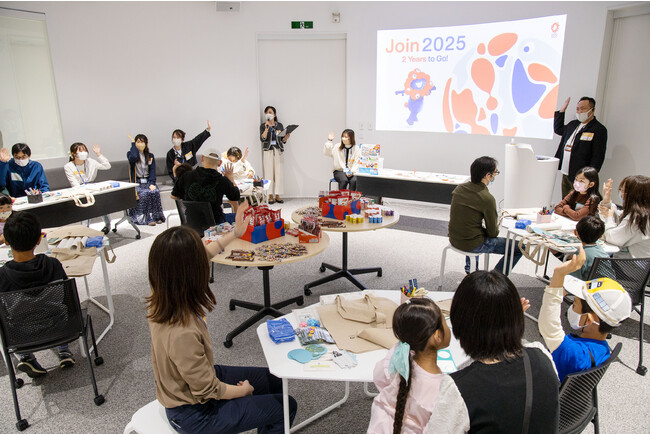 「シールで万博2年前パネルをつくろう!」は、OSPグループが万博開催時にシール・ラベルを協力する企業であり、また、シールのリーディングカンパニーとして、シールを学び・楽しむことをテーマに開催しました。3つのワークショップを楽しんでいただく体験型イベントで、従業員とその子どもたち計26名が参加しました。