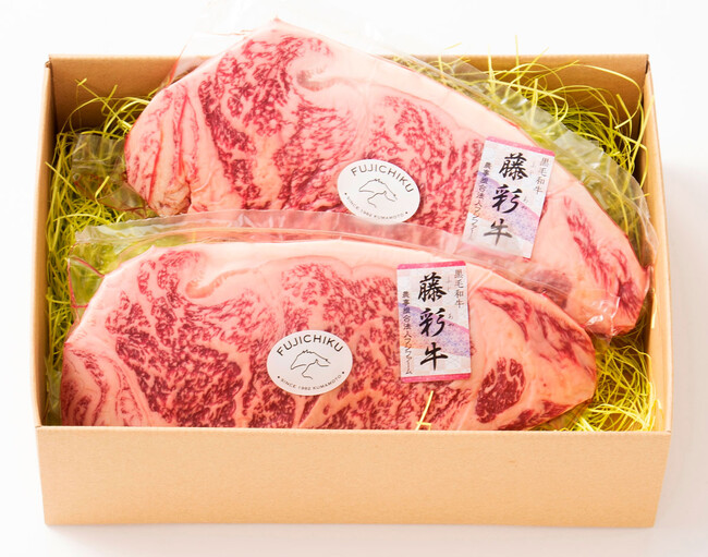 フジチクオリジナルブランド黒毛和牛「藤彩牛」馬刺しと同じく自社肥育・加工を行っているため肉質は柔らかく赤身の旨味とサシの甘味わえるお肉です。
