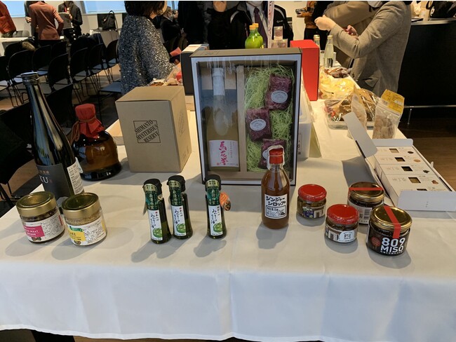 写真1枚目:審査員特別賞を受賞した「馬刺しと焼酎の晩酌セット【松】」展示の様子