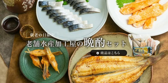 現在、9月限定の敬老の日ギフト「老舗水産加工屋の晩酌セット」(3,280円(税込))も販売中です。晩酌のお供にぴったりな、ノルウェー産の鮭を使用した「骨取り鮭塩ハラス」、「鮭鰭のから揚げ」やしめさばなどをセットにしたこの時期だけの特別なセットです。