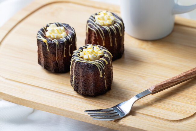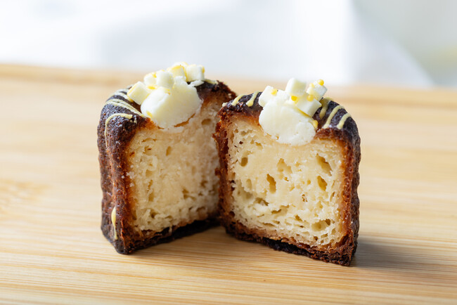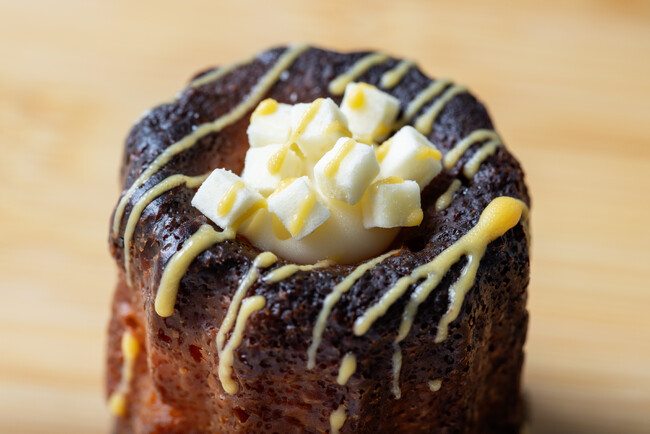 「チーズカヌレ」は、生地にパルメザンチーズとナチュラルチーズをふんだんに使用。一口食べた瞬間から、チーズの芳醇な香りとコクが口いっぱいに広がる逸品です。