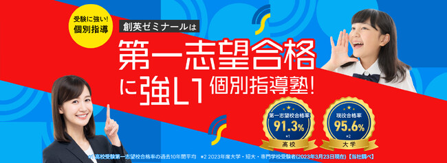 株式会社創英コーポレーション(本社:神奈川県横浜市、代表取締役:豊川 忠紀)が運営する個別指導塾創英ゼミナールは、通塾している生徒の2023年度大学受験において大学の現役合格率が95.6%であったことをお知らせします。創英ゼミナールはこれからも生徒一人ひとりに合わせた指導でみなさんの成長に寄り添います。