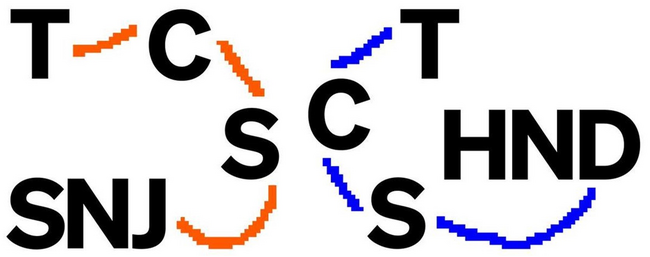 「TCS」というイベントをより浸透させるための新しいアイデンティティを制作しました。画面の際側に配置された「T」「C」「S」のイニシャルと開催年、開催エリア名を遊びのあるラインで星座のように連結していく動的なビジュアルシステムです。小さく絞るとワンポイントのロゴとなり、画面に大きく展開するとキービジュアルになる拡張性の高いビジュアルシステムによって、TCS=「ものづくりの発信の場」であることを印象づけていきます。また、空港コードのように各エリアを3文字に省略し、ビジュアルに活用する仕組み(例:新宿=SNJ、羽田=HND)にすることによって、東京の様々なエリアでイベントが同時開催されるTCSの特徴を広く伝えていきます。