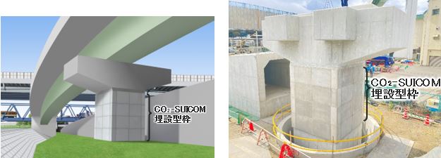 鹿島(社長:天野裕正)は、製造過程で排出されるCO2排出量が実質ゼロ以下となるカーボンネガティブコンクリート「CO2-SUICOM」(シーオーツースイコム)を用いた埋設型枠を、高速道路の橋脚工事に初めて導入しました。これにより、通常排出されるCO2を100%削減し、さらに10%のCO2を吸収しました。橋脚1基あたりの温室効果ガス(CO2)の固定化量は59kgです。