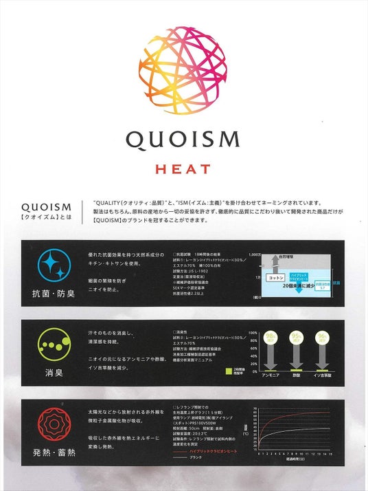 続いて機能性の紹介です。中綿には、やや厚めで蓄熱・発熱効果のあるものを使用しています。