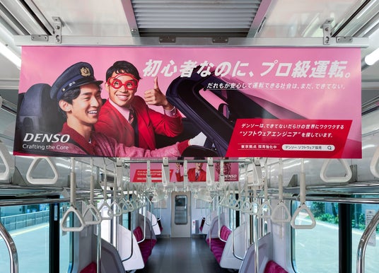 株式会社デンソーは、ソフトウェアエンジニアの採用強化に向けて、ブランドメッセージである「できてないだらけって、ワクワク」をコンセプトにした広告ビジュアルを活用し、小田急線の全車両※にて中吊り広告の掲出を開始しました。