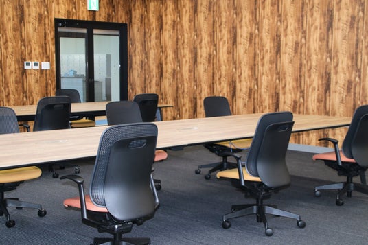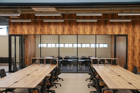 A~Fの6つの商談室・ミーティングルームを完備、オフィス中央にあるガラス張りで大きめの会議室「C」は、会議のほかに社員研修などにも使用