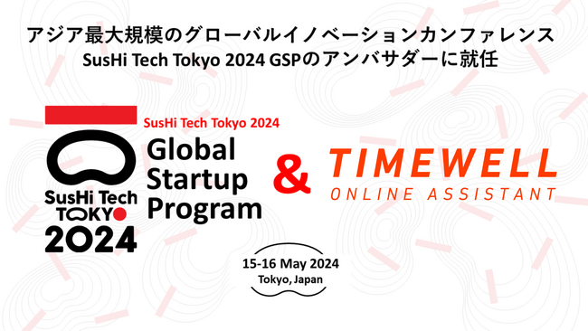株式会社TIMEWELLが、2024年5月15日(水)~16日(木)に日本・東京にて開催される、グローバルイノベーションカンファレンス「SusHi Tech Tokyo 2024 Global Startup Program(スシテックトウキョウ2024 グローバルスタートアッププログラム)」のアンバサダーに就任。