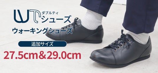 WTシューズの人気No.1デザインでもある「ウォーキングシューズ」は、WTシューズユーザーの需要に合わせ22.0cm~28.0cmの全12サイズを採用していましたが、この度ご愛用者様からのご要望の声にお応えし、定番色・黒に新たに27.5cmと29.0cmを追加しました。