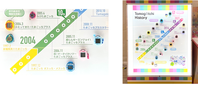 1996年の発売以降、数多くの方々に愛されてきた歴代のたまごっち機種を展示します。