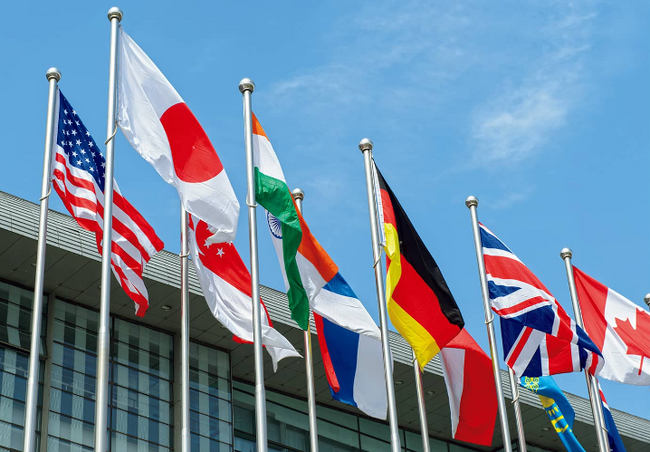当社の「ナショナルフラッグ」部門では、国賓(各国の大統領や国王など)来日時や国際的な会議(サミットなど)、スポーツイベント(オリンピック・ワールドカップなど)の際に国旗を提供し、掲揚・撤去業務を行っています。国旗はその国の象徴であり、国旗に敬意を表することは国際社会の基本的なマナーです。当社では正確なデザイン・カラー・サイズ等を各国に確認して国旗を制作しています。また、国旗の掲揚についても優先順位・左右の別など詳細なルールがあります。重要な外交行事において、このような国際儀礼上のルール(プロトコール)を遵守できていないと、国際的な問題に発展しかねません。当社は長年にわたり外務省様等から委託を受けて、国と国との交流を支える仕事に誇りを持ってナショナルフラッグ事業に取り組んでいます。