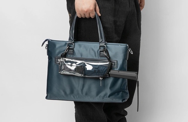 PVCケースのフックをバックパックのフックやカバンのサイド、トートの外側に吊るせば、カバンの中身に影響せずに折りたたみ傘を吊るして収納できます。