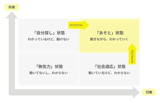 VCIプログラムは、「内省」と「行動」の両者を重視しながらそれぞれにとっての「あそと」状態を探求していきます。