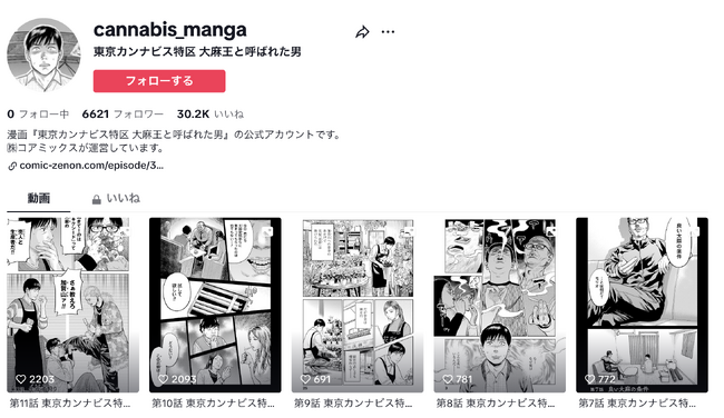 株式会社コアミックス(東京都武蔵野市)は、『東京カンナビス特区 大麻王と呼ばれた男』の公式TikTokアカウントを開設しました。投稿された動画は、既に総再生回数200万回を超え、話題を呼んでいます。
