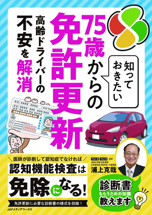株式会社JAFメディアワークス(代表取締役社長:日野眞吾、所在地:東京都港区)は、『知っておきたい75歳からの免許更新』を 2024年9月18日(水)に発売しました。75歳以上の運転免許更新について、医療機関の診断書を提出すれば「認知機能検査が免除になる方法」をわかりやすく解説しています。