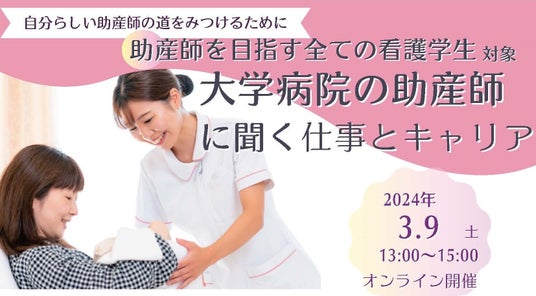 2024年3月9日(土)、学校法人東京女子医科大学では、助産師を目指す看護学生向けにオンラインキャリアセミナーを開催いたします。