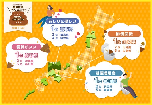 ・「おしりに優しい」「便質が良い」都道府県ランキングはどちらも「鳥取県」が1位という結果となった。