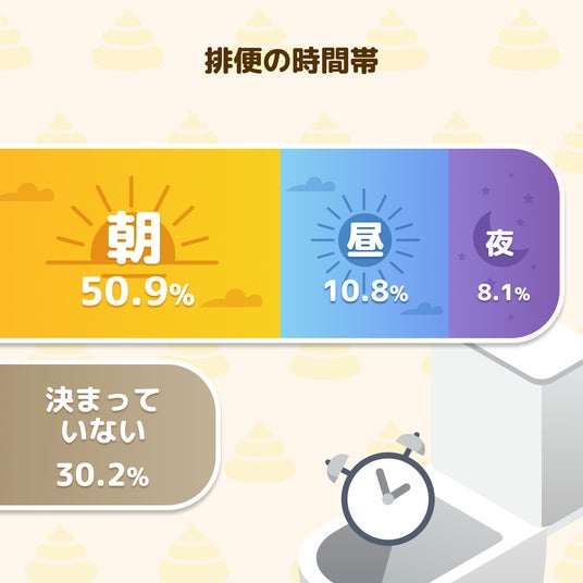 ・朝にうんちをすることが多いと回答した人は半数以上で、2人に1人が「朝派」ということが分かった。