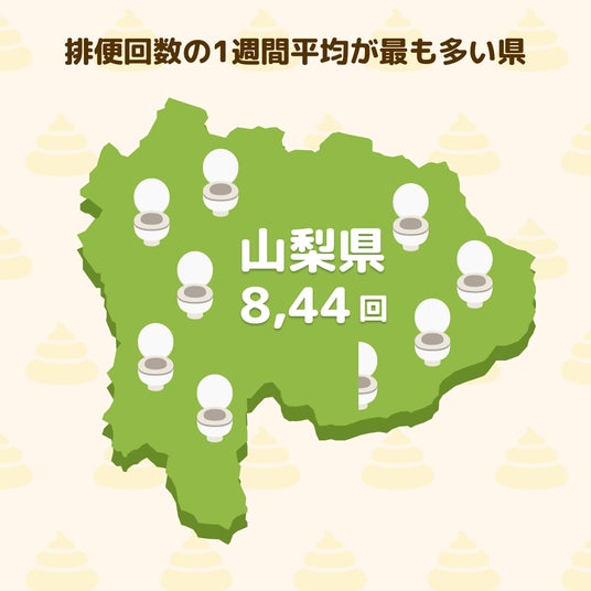 ・また、排便の回数が多いのは山梨県で、一週間の平均は8.44回という結果になった。