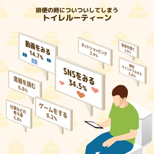 うんちをする時についついしてしまう「トイレルーティン」は「SNSをみる」