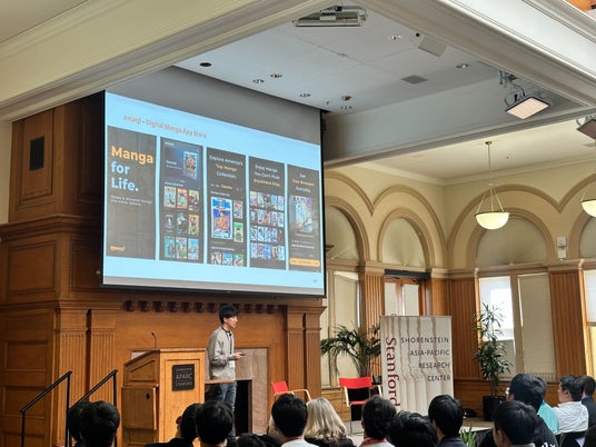 2025年5月29日(米国)、スタンフォード大学との共催で日本のコンテンツをテーマにカンファレンス「Japan’s Global Content Industries: Manga, Anime, Game, Music, and More」を開催、日本のコンテンツ産業を代表する事業家やクリエイターの皆さまとともに、オレンジ代表の宇垣も登壇し、マンガの魅力やオレンジのミッション・事業内容についてお話しました。